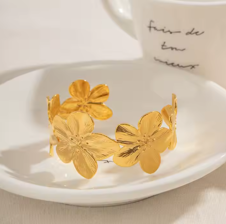 Whether you're dressing up a casual outfit or completing an elegant look, this statement flower bangle adds a radiant, confident touch that says style in full bloom.