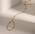 Delicate, distinctive, and endlessly feminine — the Dainty 18K Gold Plated Bead Chain Ring Bracelet is the perfect fusion of elegance and modern charm. Crafted from high-quality stainless steel and finished in radiant 18K gold plating, this unique piece connects a slim bracelet to a matching ring with a graceful beaded chain, creating a lightweight statement for any occasion.