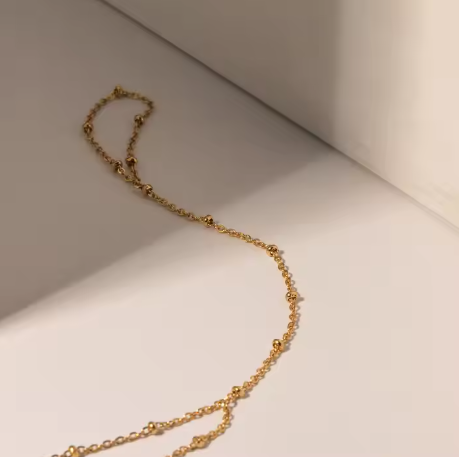 ✔️ Dainty Beaded Chain Design – Minimalist yet eye-catching, adding a touch of refined texture.