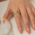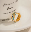 Turn heads and ward off negativity with the Trendy Colorful Evil Eye Open Ring. Crafted from durable stainless steel and finished with luxurious PVD 18K gold plating, this vibrant ring features multi-colored enamel evil eyes — a playful twist on a timeless protective symbol.