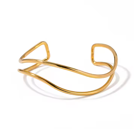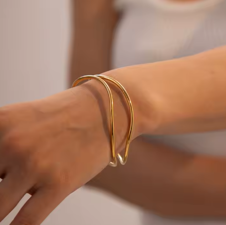Discover effortless sophistication with the New Trendy 18K Gold Plated Stainless Steel Double Layer Bangle — a beautifully minimal piece designed to elevate your everyday look. Featuring a sleek parallel line design, this open cuff bracelet offers a clean, structured silhouette that’s perfect for stacking or wearing solo.